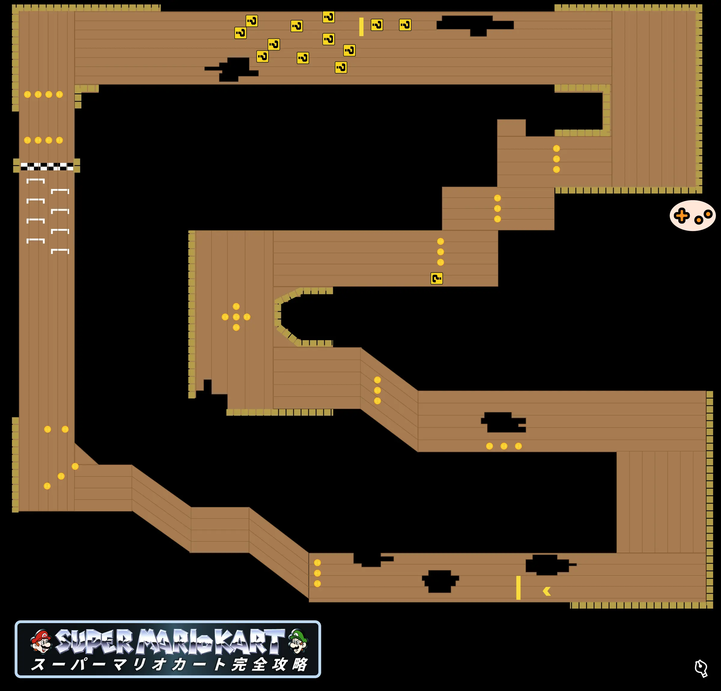 初心者はスルーしてOK!すり鉢の左右のてっぺんに7枚のコインがあるが、取りに行くと大きくラインを外れるため、タイムロスになりやすい。コースに慣れた中級者以上や、コイン集めが必要な時だけ狙おう!