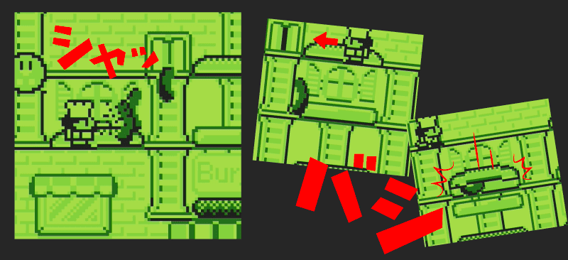 小さな画面でも、シルエットを見るだけでアイテムの効果がわかりやすくなるように変更がされているなど、シリーズ中でも珍しい要素が満載である。★★「スーパーマリオランド」特集グラフィック豪華版を見る★★