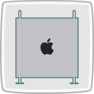 図の通り繋げば完了だ。スタンドの組み方やそれに関する便利な使い方や価値は、Pro Standの記事で詳しく紹介しているので そちらの記事を見て欲しい。使い方は、Pro Display XDRの背面にある 電源コードとカミナリみたいなマークがついている 差込口に付属のケーブルをさし、Mac Pro側にも同様にカミナリみたいなマークの 差込口に図のように挿せば完了だ。 あとはMac Proの電源を入れれば 勝手にPro Display XDRの電源もON/OFFしてくれる。