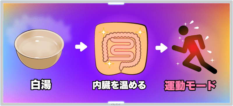 白湯で内臓を温めることによって、体が運動モードになって新陳代謝が良くなるのだ。